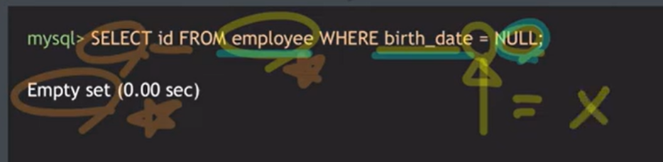 - 아무것도 가져오지 않았으니, "employee table에서 birth_date 정보가 NULL인 것은 아무것도 없나보다" 라고 생각X