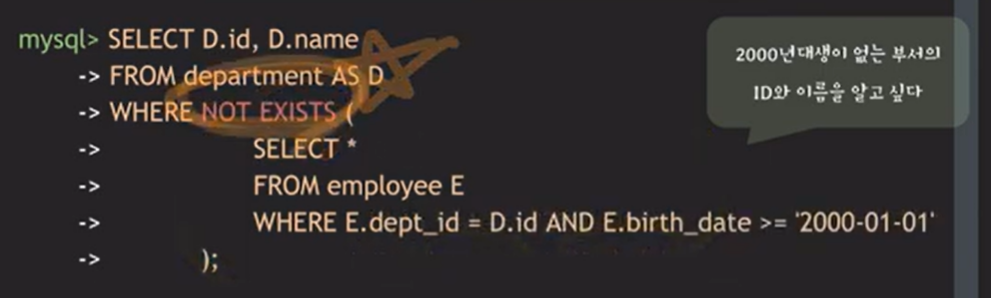 - NOT IN을 NOT EXISTS로 바꿔서 처리